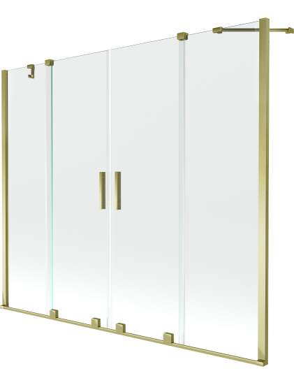 Mexen Velar Duo parawan nawannowy 2-skrzydłowy przesuwny 200 x 150 cm, transparent, złoty - 896-200-000-02-50