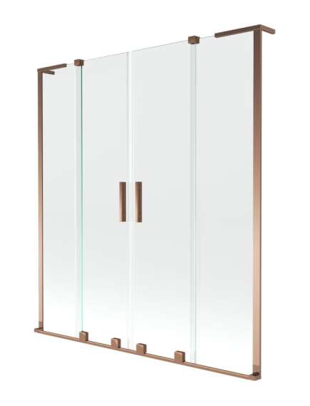 Dane techniczne: Szerokość: 140 cm Wysokość: 150 cm Rodzaj 2-skrzydłowy Montaż: Uniwersalny Typ: Ruchomy/Rozsuwany Rodzaj szkła: Hartowane Kolor szkła: Transparentny Grubość szkła: 8 mm Wykończenie: Różowe złoto Stabilizator kątowy L Powłoka ułatwiająca czyszczenie Niwelacja nierówności ściany Komplet uszczelek odprowadzających wodę |