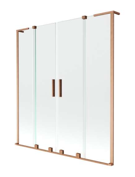 Mexen Velar L Duo parawan nawannowy 2-skrzydłowy rozsuwany 150 x 150 cm, transparent, miedź szczotkowana - 896-150-003-02-65