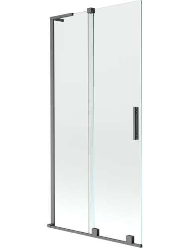 Dane techniczne: Szerokość: 95 cm Wysokość: 150 cm Rodzaj 2-skrzydłowy Montaż: Uniwersalny Typ: Ruchomy/Rozsuwany Rodzaj szkła: Hartowane Kolor szkła: Transparentny Grubość szkła: 8 mm Wykończenie: Gun gray szczotkowany Stabilizator kątowy L Powłoka ułatwiająca czyszczenie Niwelacja nierówności ściany Komplet uszczelek odprowadzających wodę |