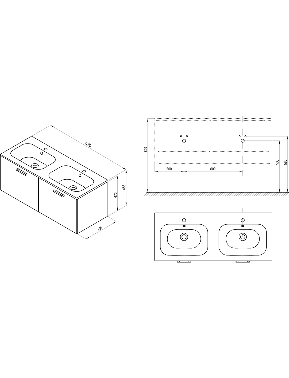 Labi organizēts skapja iekšpuse pasargās jūs no jucekļa. Divvietīgajā izlietnē var ērti izvietot divus lietotājus vienlaicīgi, un plašajā skapī varēs uzglabāt ģimenes kosmētiku. Skapītim ir divas lielas atvilktnes ar iekšējo augstumu 40 cm. Rokturis ir pieejams spīdīgā hroma, melnā vai baltā krāsā.