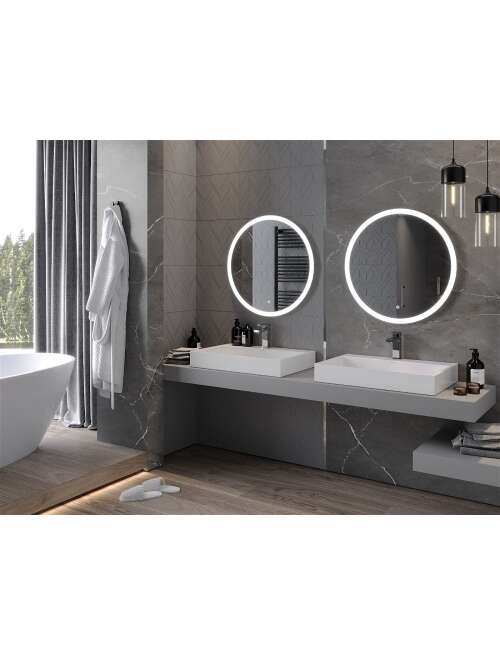 Dane techniczne: Rozmiar: 70 x 70 cm Głębokość: 24 mm Grubość szkła: 4 mm Włącznik podświetlania: Dotykowy Barwa LED: Zimna - 6000K Liczba diod LED: 60/mb Zużycie energii: 4,8 W/mb Napięcie wejściowe: 230 V Klasa energetyczna: F (dawniej A+) Stopień ochrony: IP44 & certyfikat CE Lustro posiada mate grzewczą, która po włączeniu zapobiega powstawaniu pary Zasilanie przygotowane do podłączania pod instalację elektryczną w ścianie |