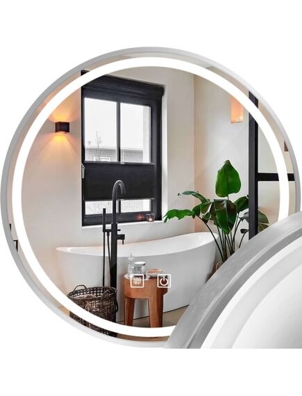 Lustro jest wykonane z najwyższej jakości materiałów, idealnie się prezentuje oraz jest bardzo wytrzymałe. Posiada do wyboru trzy zmieniane dotykowo barwy światła Led – ciepła, neutralną i zimną oraz funkcję podgrzewania zapobiegającą zaparowaniu powierzchni. Przełącznik dotykowy umieszczony w tafli lustra podświetlany jest na niebiesko przy aktywności funkcji. Przewód zasilający w kolorze białym o długości 110cm.