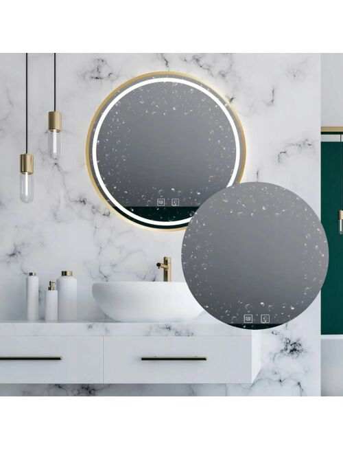 Lustro jest wykonane z najwyższej jakości materiałów, idealnie się prezentuje oraz jest bardzo wytrzymałe. Posiada do wyboru trzy zmieniane dotykowo barwy światła Led – ciepła, neutralną i zimną oraz funkcję podgrzewania zapobiegającą zaparowaniu powierzchni. Przełącznik dotykowy umieszczony w tafli lustra podświetlany jest na niebiesko przy aktywności funkcji. Przewód zasilający w kolorze białym o długości 110cm.