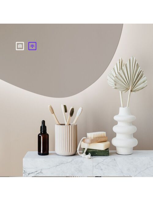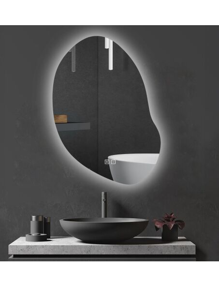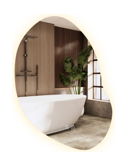 | Asymetryczne lustro z podświetleniem Led to idealna propozycja dla tych którzy cenią sobie wygodę użytkowania oraz nowoczesny design. Lustro jest wykonane z najwyższej jakości materiałów, idealnie się prezentuje oraz jest bardzo wytrzymałe. Posiada do wyboru trzy zmieniane dotykowo barwy światła Led – ciepła, neutralną i zimną oraz funkcję podgrzewania zapobiegającą zaparowaniu powierzchni. Przytrzymując palcem podświetlony przycisk na panelu dotykowym możesz regulować intensywność mocy światła. Przewód zasilający w kolorze białym o długości 110cm. |