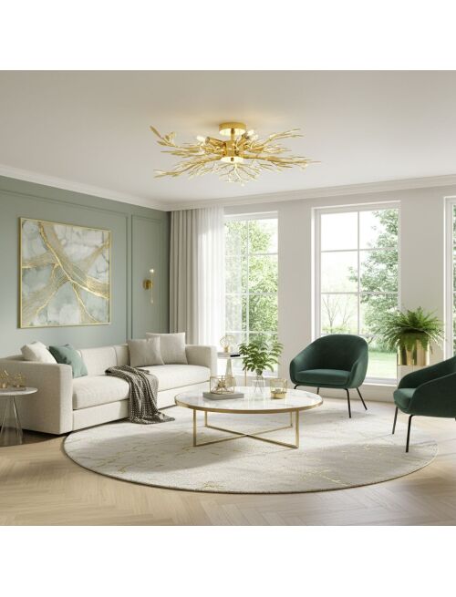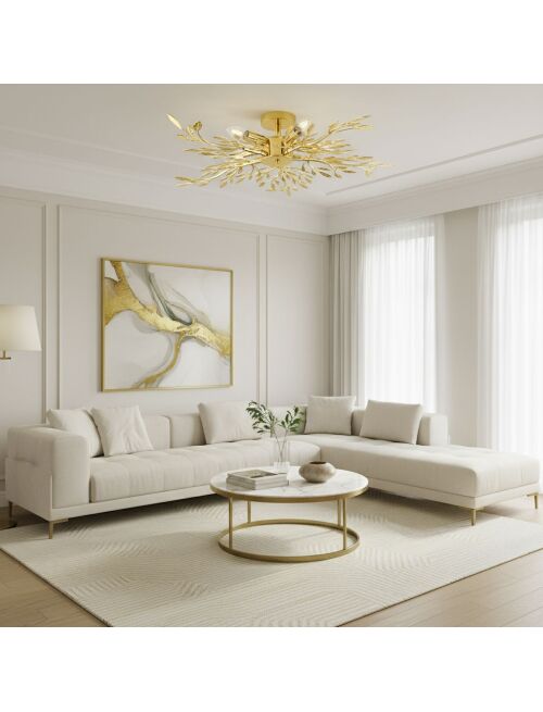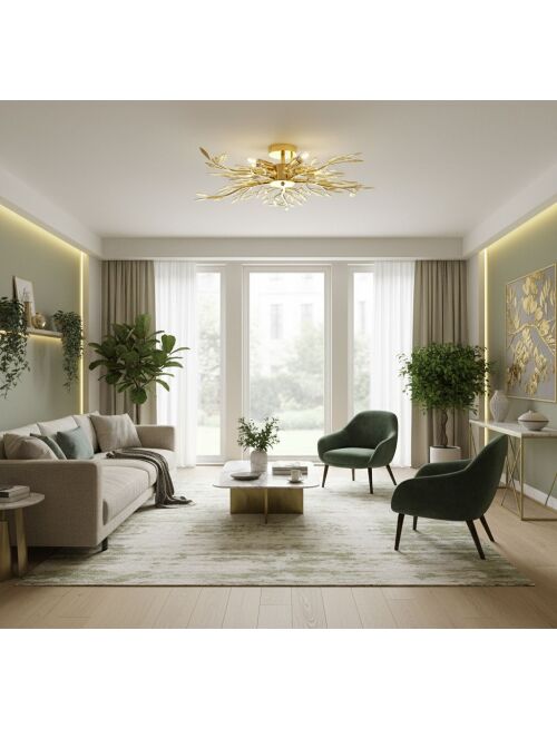 Nowoczesna lampa sufitowa w kolorze złotym to wyjątkowe połączenie elegancji i lekkości inspirowanej naturą. Złote wykończenie wprowadza do wnętrza ciepły blask, a dekoracyjne elementy w formie liści nadają całości subtelnego, artystycznego charakteru. Lampa pięknie rozświetla przestrzeń, tworząc przytulny i nastrojowy klimat w salonie, sypialni lub jadalni. Jej efektowna forma sprawia, że staje się nie tylko źródłem światła, ale również stylowym elementem dekoracyjnym, który dodaje wnętrzu klasy i wyrafinowanego uroku. To doskonały wybór dla miłośników eleganckiego designu i złotych akcentów w aranżacji. |