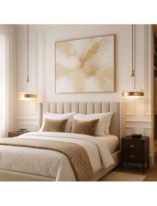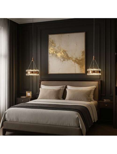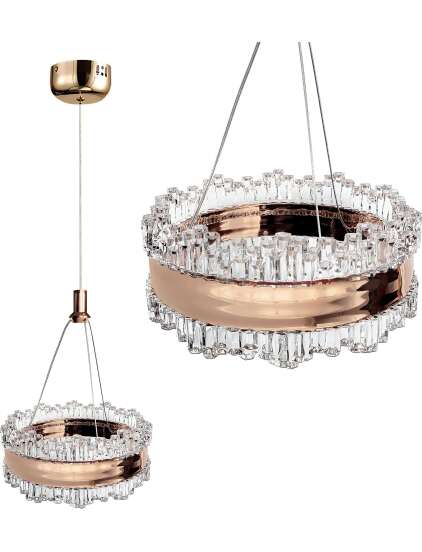 Nowoczesna lampa wisząca Led w wykończeniu jasnego różowego złota to propozycja dla osób, które pragną dodać wnętrzu szyku, lekkości i designerskiego charakteru. Kryształowy środek, wykonany z wysokiej jakości tworzywa, imituje szlifowaną strukturę szkła, pięknie odbijając refleksy świetlne i dodając blasku każdemu wnętrzu. Cała konstrukcja została stworzona z dbałością o szczegóły – lekka, ale solidna, odporna na uszkodzenia i łatwa w montażu. Lampa jest idealnym dodatkiem do wnętrz utrzymanych w stylu glamour, modern classic czy minimalistycznym. Doskonale sprawdzi się w sypialni, nad wyspą kuchenną, w eleganckim salonie lub w nowoczesnym holu. Jej dekoracyjny charakter czyni ją także świetnym wyborem do przestrzeni komercyjnych – butików, restauracji czy ekskluzywnych salonów.