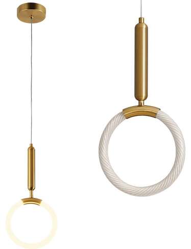 Nowoczesna lampa wisząca Led, która łączy geometryczną formę z subtelną elegancją. Charakterystyczny klosz wykonany z wytrzymałego tworzywa tworzy przyjemnie rozproszone światło, które buduje ciepłą atmosferę we wnętrzu. Ciepła barwa światła 3000 K doskonale sprawdza się w przestrzeniach przeznaczonych do relaksu – nad stolikiem kawowym, wyspą kuchenną lub w nowoczesnym foyer. Górna część lampy, wykonana z aluminium w szczotkowanym wykończeniu złota, dodaje jej ekskluzywnego charakteru i podkreśla minimalistyczny design. To idealna propozycja dla osób ceniących oryginalne wzornictwo i wysoką jakość wykonania, które idą w parze z funkcjonalnością.