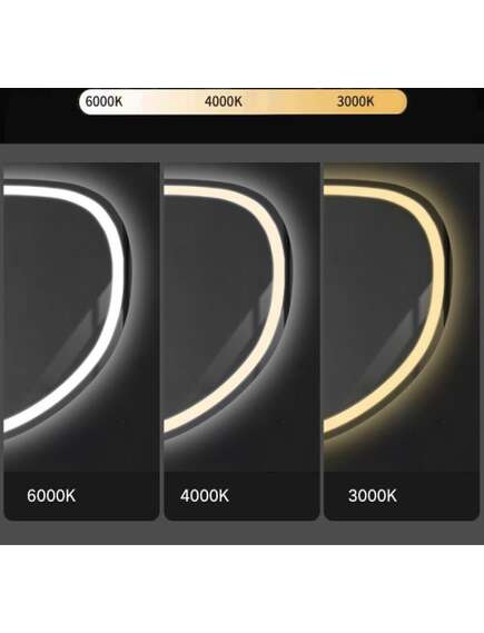 | Asymetryczne lustro z podświetleniem Led to idealna propozycja dla tych którzy cenią sobie wygodę użytkowania oraz nowoczesny design. Lustro jest wykonane z najwyższej jakości materiałów, idealnie się prezentuje oraz jest bardzo wytrzymałe. Posiada do wyboru trzy zmieniane dotykowo barwy światła Led – ciepła, neutralną i zimną oraz funkcję podgrzewania zapobiegającą zaparowaniu powierzchni. Przewód zasilający w kolorze białym o długości 110cm.