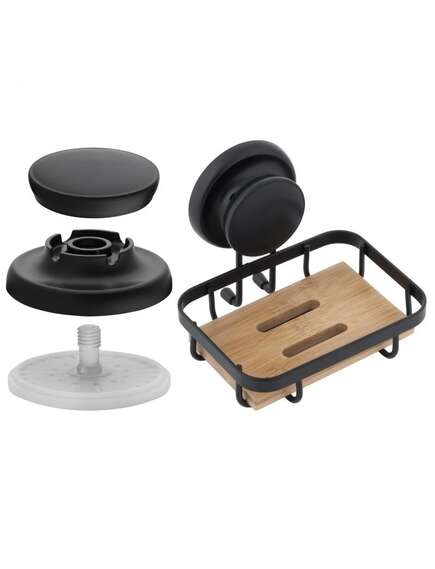 Ziepju trauks ir piestiprināts pie sienas ar spēcīgu piesūcekni.