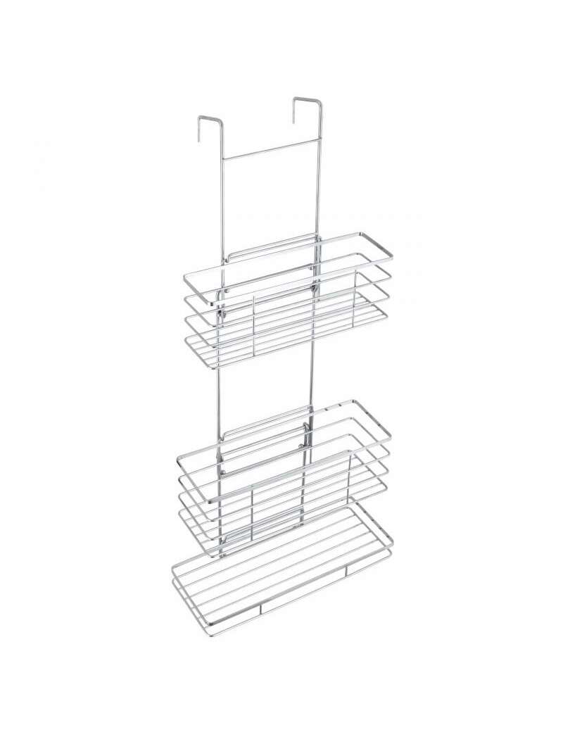 Trīs līmeņu plaukts dušas kabīnes piederumiem. Izgatavots no hromētas tērauda stieples.