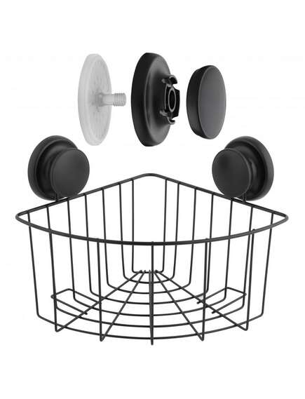 Vannas istabas stūra grozs ir piestiprināts pie sienas ar spēcīgu piesūcekni.