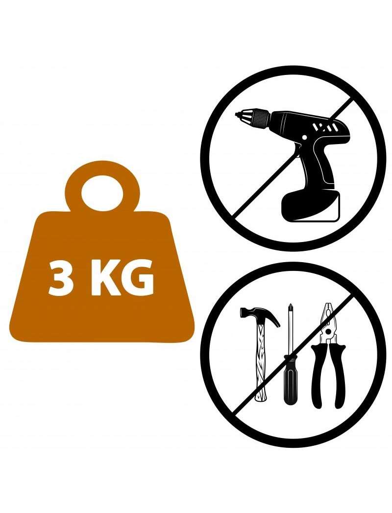 Tas garantē ātru, vienkāršu un drošu uzstādīšanu. Nav nepieciešama urbšana vai līmēšana. Izjaukšana neatstāj pēdas.