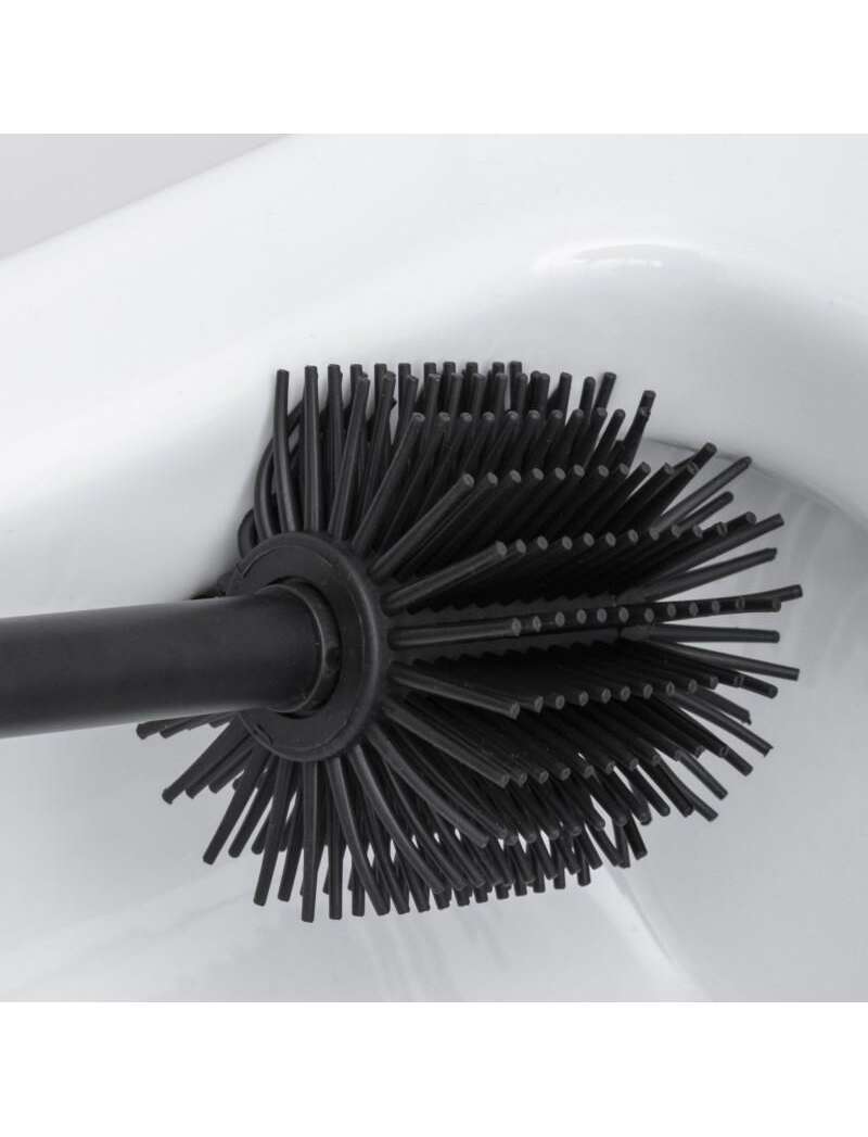 Maināma tualetes birste. Pašattīroša galva izgatavota no augstas kvalitātes melna silikona. Šis materiāls neļauj tualetes papīram un netīrumiem pielipt pie birstes mēlītēm, nodrošinot labu higiēnu un birstes veiktspēju. Elastīgās silikona šķiedras ir ideāli piemērotas tualetes poda malu tīrīšanai un sasniedz pat visgrūtāk aizsniedzamās vietas, tīrot efektīvāk nekā klasiskie sintētiskie sari. Ātri atbrīvosities no ieaugušajiem netīrumiem, neizmantojot spēku. Birstes turētājs ir izgatavots no melna pusglancēta tērauda.